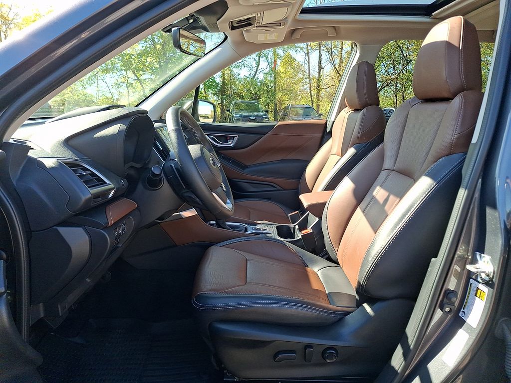 The interior of this Forester Touring is a true sanctuary, featuring premium leather-trimmed upholstery, heated front and rear seats, and a harman/kardon® premium audio system that will immerse you in your favorite tunes. The Subaru STARLINK 8.0" Multimedia Navigation System keeps you connected and on track, while the panoramic moonroof floods the cabin with natural light.