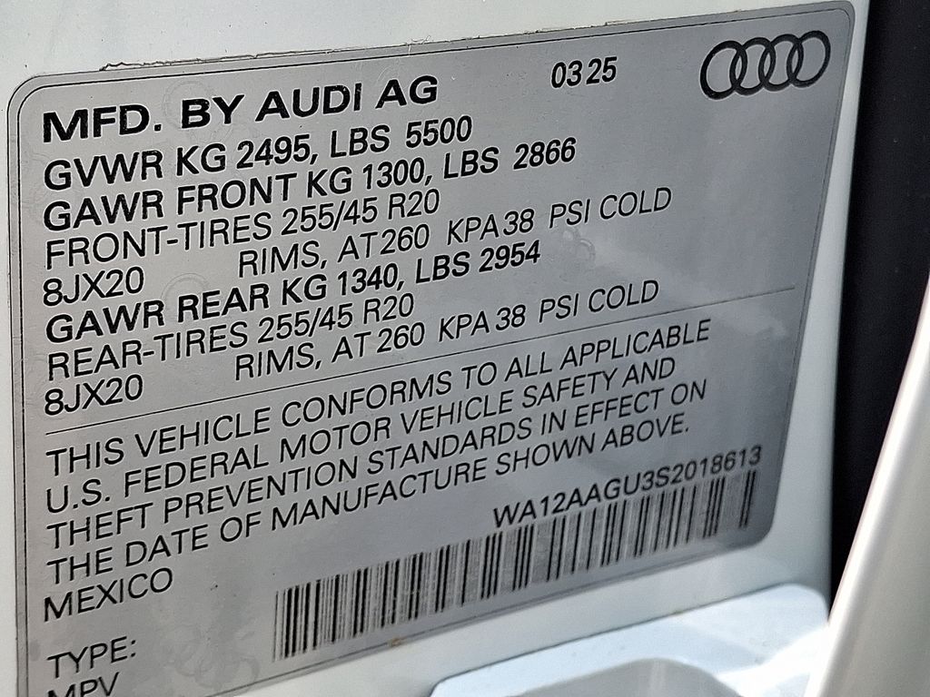 Exterior highlights include the striking LED Headlights Plus with Digital DRL, Panoramic Sunroof, and Power Liftgate, which combine to create a stunning visual presence on the road. The 20" Wheel Package with 5-Arm Design and Audi Beam-Rings add a touch of sophistication to the already impressive styling.
