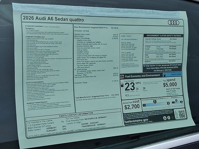 We Are Audi State College, your premier Audi dealer in State College, Pennsylvania, we're proud to offer a stunning selection of the latest Audi models, backed by exceptional customer service and unbeatable deals. Whether you're looking for the dynamic Audi A3, the sleek Audi A4, the luxurious Audi A6, or the performance-driven Audi S5, we have something to meet every need. Explore the sophisticated Audi Q3, the versatile Audi Q5, or the commanding Audi Q7. For those seeking cutting-edge innovation, the Audi Q8 and the all-electric Audi e-tron are ready to impress. Plus, experience the exhilarating power of the Audi RS5, Audi S7, and more. As a proud member of the Ciocca Automotive family, we offer attractive lease options and specials tailored to fit your budget. Whether you're interested in financing or leasing a new Audi, our team is here to help you find the perfect vehicle. Visit us today at Audi State Collegeâ"your destination for new Audi vehicles in State College. Drive home in your dream Audi today! Price includes: $3000 - Customer Credit Lock Program. Exp. 03/31/2026