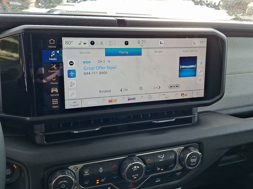 12.3" Touchscreen Display, 2-Door Passive Entry, Front Door Locks, 3.45 Overall Top Gear Ratio, 4-Wheel Disc Brakes, 4G LTE Wi-Fi Hot Spot, 8 Speakers, ABS brakes, Advanced Brake Assist, Air Conditioning, Air Conditioning with Auto Temp Control, Air Filtering, AM/FM radio: SiriusXM with 360L, Apple CarPlay, Apple CarPlay/Android Auto, Automatic Headlamps, Aux Battery, Black 3-Piece Hard Top, Brake assist, Cloth Low-Back Bucket Seats, Cluster 7.0" TFT Color Display, Compass, Connectivity - US/Canada, Convenience Group, Corning Gorilla Glass, Deep Tint Sunscreen Windows, Delay-off headlights, Driver door bin, Driver vanity mirror, Dual front impact airbags, Dual front side impact airbags, Electronic Stability Control, Emergency/Assistance Call, Enhanced Adaptive Cruise Control, For More Info, Call 800-643-2112, Freedom Panel Storage Bag, Front anti-roll bar, Front Bucket Seats, Front Center Armrest w/Storage, Front fog lights, Front reading lights, Full Speed Forward Collision Warning Plus, Google Android Auto, Heated Front Seats, Heated Steering Wheel, Illuminated entry, Integrated Center Stack Radio, Integrated roll-over protection, Low tire pressure warning, MOPAR All-Weather Floor Mats, Myflexcare Service Plan, Non-Lock Fuel Cap Without Discriminator, Normal Duty Suspension, Occupant sensing airbag, Outside temperature display, Overhead airbag, Panic alarm, ParkView Rear Back-Up Camera, Passenger door bin, Passenger vanity mirror, Power Heated Mirrors, Power steering, Power windows, Premium Wrapped Steering Wheel, Quick Order Package 22S Sport S, Quick Order Package 23S Sport S, Radio data system, Radio: Uconnect 5 with 12.3" Display, Rear anti-roll bar, Rear reading lights, Rear Window Defroster, Rear Window Wiper/Washer, Remote keyless entry, Security Alarm, SiriusXM Radio Service, SiriusXM with 360L, Speed control, Steering wheel mounted audio controls, Stop-Start Dual Battery System, Sun Visors with Illuminated Vanity Mirrors, Tachometer, Telescoping steering wheel, Tilt steering wheel, Traction control, Trip computer, Universal Garage Door Opener, Variably intermittent wipers, Wheels: 17" x 7.5" Black Steel Styled, Wheels: 17" x 7.5" Gray.
