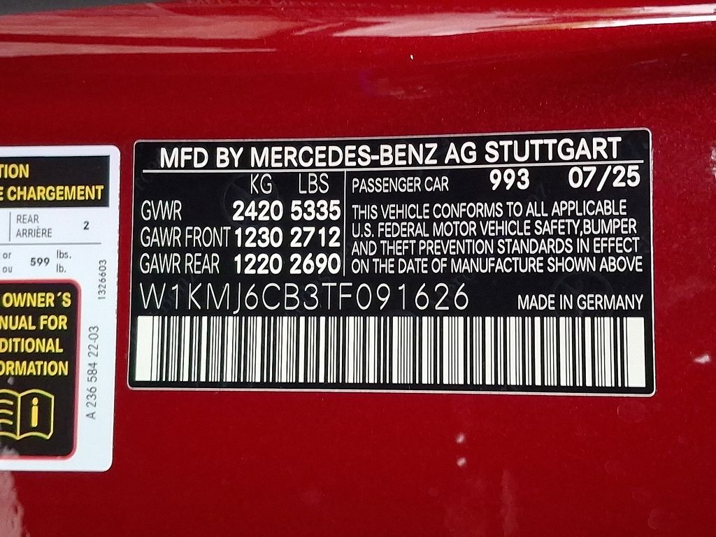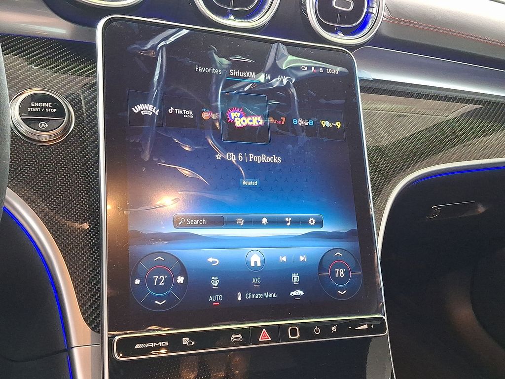 3.0L I6 Turbo, 11.9" Center Touchscreen Display, 15 Speakers, 4-Wheel Disc Brakes, ABS brakes, Adaptive suspension, Air Conditioning, Alloy wheels, AM/FM radio: SiriusXM w/360L, Apple CarPlay®/Android Auto®, Auto High-beam Headlights, Auto tilt-away steering wheel, Auto-dimming door mirrors, Auto-dimming Rear-View mirror, Automatic temperature control, Brake assist, Bumpers: body-color, Child-Seat-Sensing Airbag, Compass, Delay-off headlights, Driver door bin, Driver vanity mirror, Dual front impact airbags, Dual front side impact airbags, Electronic Stability Control, Emergency communication system: Mercedes-Benz Emergency Call Service, Exterior Parking Camera Rear, Four wheel independent suspension, Front anti-roll bar, Front Bucket Seats, Front Center Armrest, Front dual zone A/C, Front reading lights, Fully automatic headlights, Garage door transmitter: HomeLink, HD Radio, Head restraints memory, Heated door mirrors, Heated Front Seats, Heated front seats, Illuminated entry, Knee airbag, Leather steering wheel, Low tire pressure warning, MB Navigation, MB-Tex/Microfiber Upholstery with Red Stitching, Memory seat, Navigation system: MBUX, Occupant sensing airbag, Outside temperature display, Overhead airbag, Overhead console, Panic alarm, Passenger door bin, Passenger vanity mirror, Piano Black Lacquer Center Console, Power adjustable front head restraints, Power door mirrors, Power driver seat, Power moonroof: Panorama, Power passenger seat, Power steering, Power windows, Radio data system, Radio: Burmester® Surround Sound System, Rain sensing wipers, Rear anti-roll bar, Rear fog lights, Rear window defroster, Remote keyless entry, Security system, SiriusXM Satellite Radio, Speed control, Speed-sensing steering, Split folding rear seat, Spoiler, Sport steering wheel, Steering wheel memory, Steering wheel mounted audio controls, Tachometer, Telescoping steering wheel, Tilt steering wheel, Traction control, Trip computer, Turn signal indicator mirrors, Variably intermittent wipers, Wheels: 19" AMG® Multi-Spoke with Black Accents, Wireless Android Auto®, Wireless Apple CarPlay®, 3.0L I6 Turbo.