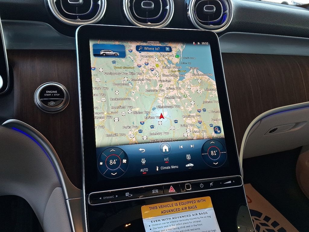 11.9" Center Touchscreen Display, 16-Way Power Front Seats, 18" 5-Twin Spoke Wheels, 3 USB C-Ports, 4-Wheel Disc Brakes, 8 Speakers, ABS brakes, Air Conditioning, Alloy wheels, AM/FM radio: SiriusXM, Apple CarPlay®/Android Auto®, Auto High-beam Headlights, Auto tilt-away steering wheel, Auto-dimming Rear-View mirror, Automatic temperature control, Brake assist, Bumpers: body-color, Child-Seat-Sensing Airbag, Compass, Delay-off headlights, Driver door bin, Driver vanity mirror, Dual front impact airbags, Dual front side impact airbags, Electronic Stability Control, Emergency communication system: eCall Emergency System, Exterior Parking Camera Rear, Four wheel independent suspension, Front anti-roll bar, Front Bucket Seats, Front Center Armrest, Front dual zone A/C, Front reading lights, Fully automatic headlights, Garage door transmitter: HomeLink, Genuine wood dashboard insert, HD Radio, Head restraints memory, Heated door mirrors, Heated Front Bucket Seats, Heated front seats, Illuminated entry, Inductive Wireless Charging, Knee airbag, Leather steering wheel, Low tire pressure warning, MB-Tex Upholstery, Memory seat, Occupant sensing airbag, Outside temperature display, Overhead airbag, Overhead console, Panic alarm, Passenger door bin, Passenger vanity mirror, Power adjustable front head restraints, Power door mirrors, Power driver seat, Power Liftgate, Power passenger seat, Power steering, Power windows, Premium audio system: MBUX, Radio data system, Radio: 3rd Generation MBUX, Rain sensing wipers, Rear anti-roll bar, Rear fog lights, Rear reading lights, Rear seat center armrest, Rear window defroster, Rear window wiper, Remote keyless entry, Security system, SiriusXM Satellite Radio, Speed control, Speed-sensing steering, Split folding rear seat, Spoiler, Steering wheel memory, Steering wheel mounted audio controls, Tachometer, Telescoping steering wheel, Tilt steering wheel, Traction control, Trip computer, Turn signal indicator mirrors, Variably intermittent wipers, Wireless Android Auto®, Wireless Apple CarPlay®.