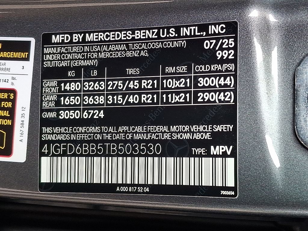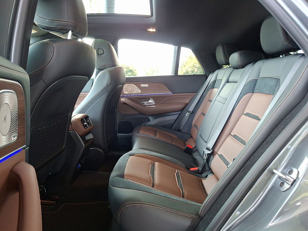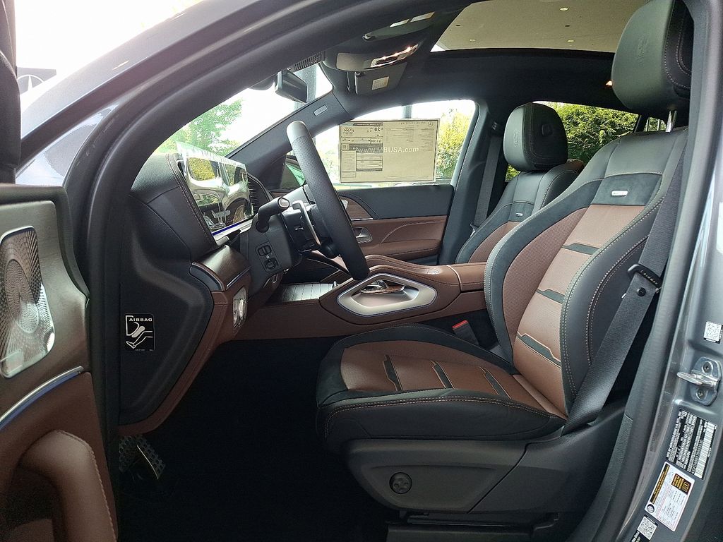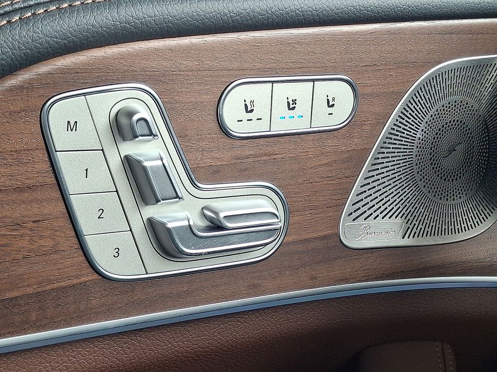 13 Speakers, 21" AMG® Twin 5-Spoke Wheels, 4-Wheel Disc Brakes, ABS brakes, Adaptive suspension, Air Conditioning, Alloy wheels, AM/FM radio: SiriusXM, Anti-whiplash front head restraints, Apple CarPlay®/Android Auto®, Auto High-beam Headlights, Auto tilt-away steering wheel, Auto-dimming door mirrors, Auto-dimming Rear-View mirror, Auto-leveling suspension, Automatic temperature control, Brake assist, Brushed Aluminum Trim, Bumpers: body-color, Child-Seat-Sensing Airbag, Compass, Delay-off headlights, Driver door bin, Driver vanity mirror, Dual front impact airbags, Dual front side impact airbags, Electronic Stability Control, Emergency communication system: eCall Emergency System, Exterior Parking Camera Rear, Four wheel independent suspension, Front anti-roll bar, Front Bucket Seats, Front Center Armrest, Front dual zone A/C, Front reading lights, Fully automatic headlights, Garage door transmitter: HomeLink, Heated and Ventilated Power Front Seats with Driver Memory, Heated door mirrors, Heated front seats, Illuminated entry, Knee airbag, Leather steering wheel, Low tire pressure warning, Memory seat, Nappa Leather Dashboard and Door Panels, Nappa Leather Upholstery, Navigation system: MBUX, Occupant sensing airbag, Outside temperature display, Overhead airbag, Panic alarm, Passenger door bin, Passenger vanity mirror, Power adjustable front head restraints, Power door mirrors, Power driver seat, Power Liftgate, Power moonroof: Panorama, Power passenger seat, Power steering, Power windows, Premium audio system: MBUX, Radio data system, Radio: 12.3" Media Display with Touchscreen, Rain sensing wipers, Rapid Heating Front Seats, Rear anti-roll bar, Rear fog lights, Rear reading lights, Rear seat center armrest, Rear window defroster, Remote keyless entry, Security system, Speed control, Speed-sensing steering, Speed-Sensitive Wipers, Split folding rear seat, Spoiler, Sport steering wheel, Steering wheel memory, Steering wheel mounted audio controls, Tachometer, Telescoping steering wheel, Tilt steering wheel, Traction control, Trip computer, Turn signal indicator mirrors, Ventilated front seats, Weather band radio.