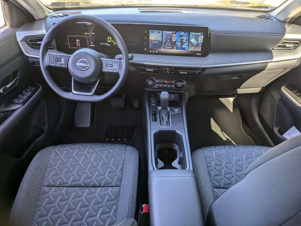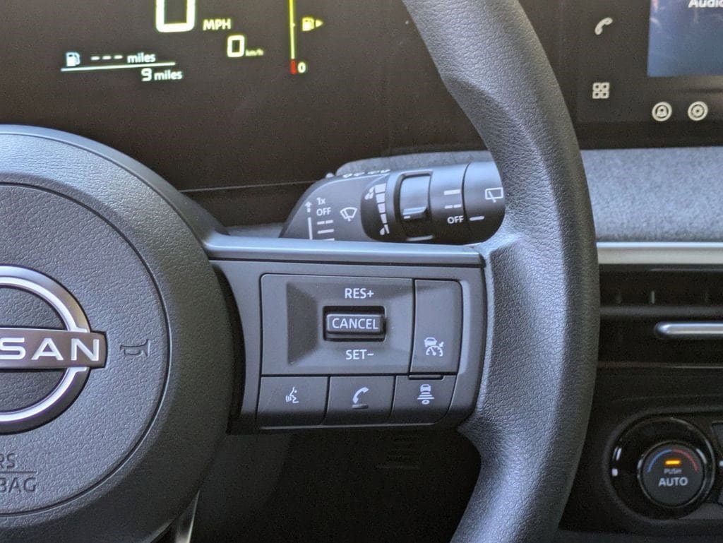 Inside, the Kicks SV balances comfort and practicality. Cloth seat trim, a sport steering wheel, and front bucket seats create a well-appointed cabin, while automatic temperature control, split-folding rear seats, and rear center armrest make every drive comfortable and flexible. Power windows and mirrors add convenience for daily use.