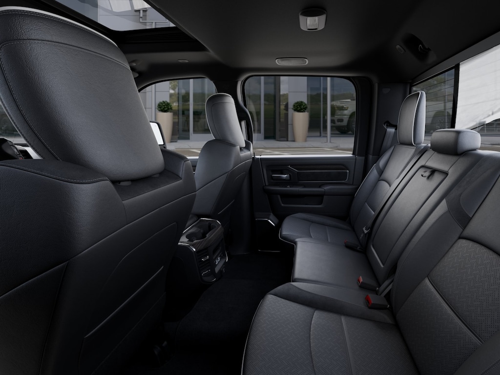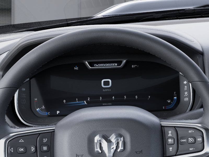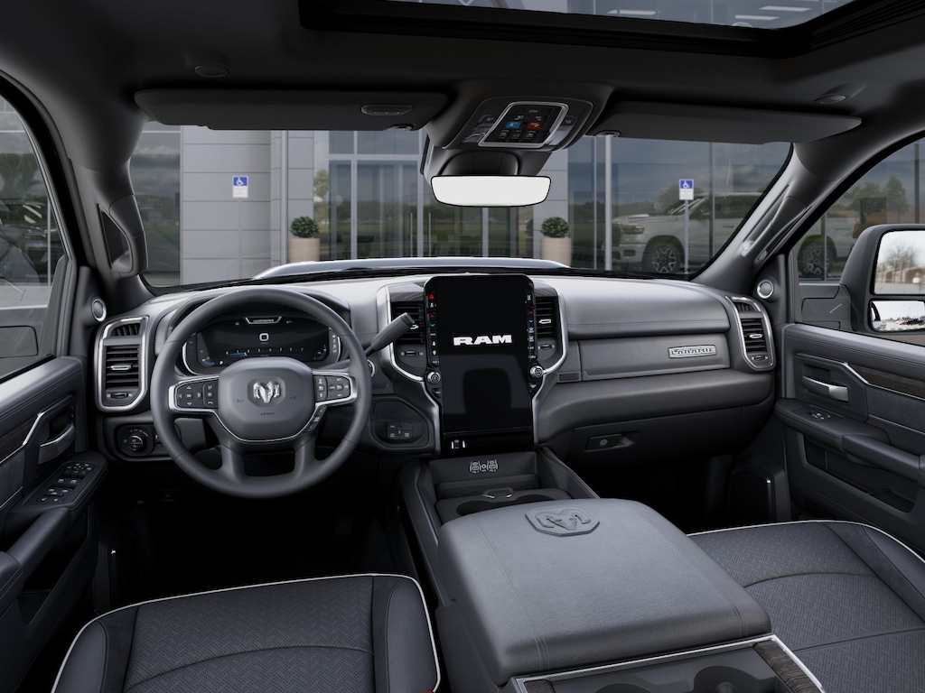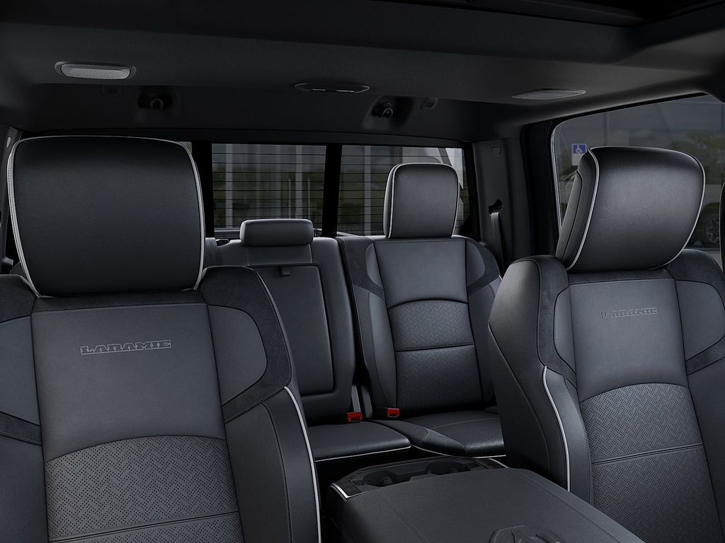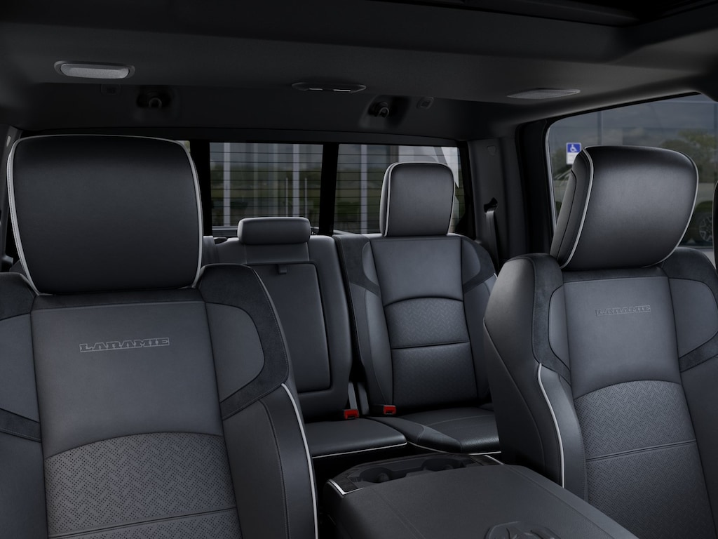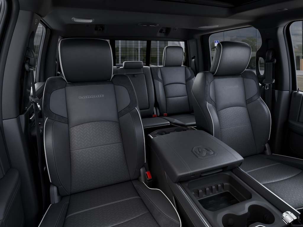 #1 Seat Foam Cushion, 115V Auxiliary Rear Power Outlet, 14.4" Touchscreen Display, 17 Speaker Harman/Kardon Premium Sound, 2 Way Rear Headrest Seat, 2nd Row in Floor Storage Bins, 4 Way Front Headrests, 4G LTE Wi-Fi Hot Spot, Active Lane Management System, Adaptive Steering System, Alexa Built-in, Anti-Spin Differential Rear Axle, Apple CarPlay, Auto Adjust in Reverse Exterior Mirrors, Auto Dim Exterior Mirror, Auto High Beam Headlamp Control, Auto Power-Folding Mirrors, Auto-Dimming Exterior Passenger Mirror, Black Exterior Mirrors, Black Exterior Truck Badging, Black Wheel Center Hub, Body Color Grille-Surround, Bucket Seats, Center Stop Lamp with Cargo View Camera, Chrome Exterior Mirrors, Connected Travel and Traffic Services, Connectivity - US/Canada, Disassociated Touchscreen Display, Drowsy Driver Detection, Dual Wireless Charging Pad, Emergency Vehicle Alert System (EVAS), Exterior Mirrors Courtesy Lamps, Exterior Mirrors with Heating Element, Exterior Mirrors with Memory, Exterior Mirrors with Supplemental Signals, Foam Bottle Insert (door Trim Panel), Folding Flat Load Floor Storage, For Details, Visit DriveUconnect.com, For More Info, Call 800-643-2112, Forward and Reverse Utility Lights, Front Seat Back Map Pockets, Full Length Upgraded Floor Console, Global Telematics Box Module, Gloss Black Grille Billets/Accents, Google Android Auto, GPS Antenna Input, GPS Navigation, HD Radio, Heated Front Seats, Heated Steering Wheel, High Back Seats, Integrated Voice Command with Bluetooth, Laramie Level 2 Plus Equipment Group, Leather Trimmed Bucket Seats, LED Bed Lighting, Mirror Running Lights, MOPAR Deployable Bed Step, MOPAR Spray in Bedliner, Night Edition, Off-Road Info Pages, Power 2-Way Driver Lumbar Adjust, Power 2-Way Passenger Lumbar Adjust, Power Adjust 8-Way Driver Seat, Power Adjust 8-Way Front Passenger Seat, Power Adjust Mirrors, Power Adjustable Pedals with Memory, Power Deployable Running Boards, Power Heated Fold Telescopic Mirrors with Memory, Power Telescoping Mirrors, Power-Adjustable Convex Aux Mirrors, Quick Order Package 2UH Laramie, Radio: Uconnect 5 Nav with 14.4" Display, Radio/Driver Seat/Mirrors/Pedals Memory, Rain Sensitive Windshield Wipers, Rear 60/40 Folding Seat, Remote Tailgate Release, Selectable Tire Fill Alert, SiriusXM Radio Service, SiriusXM with 360L, Sport Performance Hood, Traffic Sign Recognition, Trailer Tow Pages, Ventilated Front Seats, Wheels: 20" x 8.0" Black Painted Aluminum.