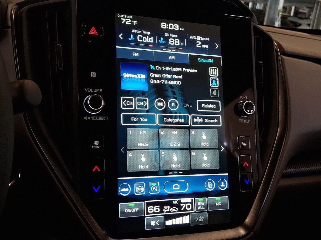 4-Wheel Disc Brakes, 6 Speakers, ABS brakes, Air Conditioning, All-Weather Floor Liners, Alloy wheels, AM/FM radio: SiriusXM, Anti-whiplash front head restraints, Auto High-beam Headlights, Auto-Dimming Exterior Mirror w/Approach Light, Auto-Dimming Mirror w/Compass & HomeLink, Automatic temperature control, Brake assist, Bumpers: body-color, Driver door bin, Driver vanity mirror, Dual front impact airbags, Dual front side impact airbags, Electronic Stability Control, Emergency communication system, Exterior Parking Camera Rear, Four wheel independent suspension, Front anti-roll bar, Front Bucket Seats, Front Center Armrest, Front dual zone A/C, Front fog lights, Front reading lights, Fully automatic headlights, Heated door mirrors, Heated Front Bucket Seats, Heated front seats, Illuminated entry, Knee airbag, Leather Shift Knob, Leather steering wheel, Low tire pressure warning, Occupant sensing airbag, Outside temperature display, Overhead airbag, Overhead console, Panic alarm, Passenger door bin, Passenger vanity mirror, Popular Package #4A, Power door mirrors, Power steering, Power windows, Radio data system, Radio: Subaru 11.6" Multimedia Plus System, Rear anti-roll bar, Rear Bumper Cover, Rear seat center armrest, Rear window defroster, Rear window wiper, Remote keyless entry, Security system, Speed control, Speed-sensing steering, Splash Guards, Split folding rear seat, Spoiler, Sport Cloth Upholstery, Standard Model, Steering wheel mounted audio controls, Tachometer, Telescoping steering wheel, Tilt steering wheel, Traction control, Trip computer, Turn signal indicator mirrors, Variably intermittent wipers, Wheels: 18" x 7.0" J Dark Gray Aluminum-Alloy.