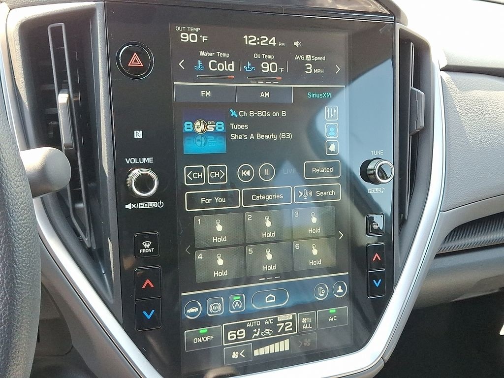 4-Wheel Disc Brakes, 6 Speakers, ABS brakes, Air Conditioning, Alloy wheels, AM/FM radio: SiriusXM, Anti-whiplash front head restraints, Auto High-beam Headlights, Auto-Dimming Mirror w/Compass & HomeLink, Automatic temperature control, Brake assist, Bumpers: body-color, Cloth Upholstery, Driver door bin, Driver vanity mirror, Dual front impact airbags, Dual front side impact airbags, Electronic Stability Control, Emergency communication system, Exterior Parking Camera Rear, Four wheel independent suspension, Front anti-roll bar, Front Bucket Seats, Front Center Armrest, Front dual zone A/C, Front fog lights, Front reading lights, Fully automatic headlights, Illuminated entry, Knee airbag, LED Upgrade, Low tire pressure warning, Occupant sensing airbag, Outside temperature display, Overhead airbag, Overhead console, Panic alarm, Passenger door bin, Passenger vanity mirror, Power door mirrors, Power steering, Power windows, Radio data system, Radio: Subaru 11.6" Multimedia Plus System, Rear anti-roll bar, Rear Bumper Cover, Rear seat center armrest, Rear window defroster, Rear window wiper, Remote keyless entry, Security system, Speed control, Speed-sensing steering, Split folding rear seat, Spoiler, Standard Model, Steering wheel mounted audio controls, Tachometer, Telescoping steering wheel, Tilt steering wheel, Traction control, Trip computer, Turn signal indicator mirrors, Variably intermittent wipers, Wheels: 17" x 7.0" J Machine Finish Aluminum-Alloy.