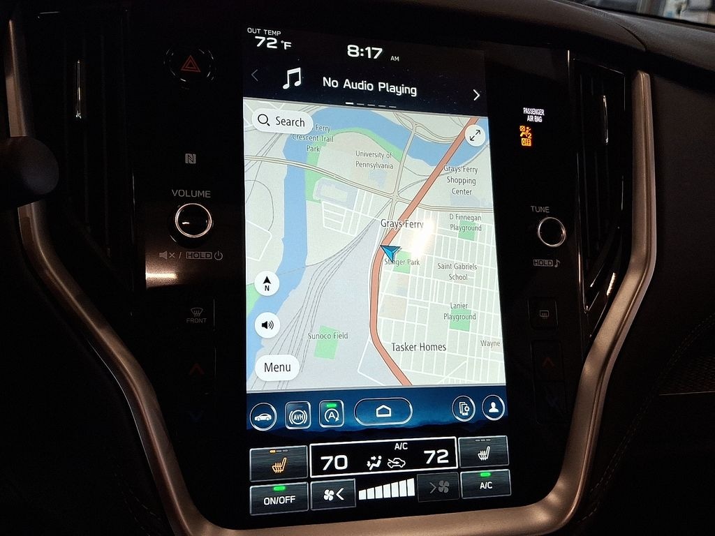 4-Wheel Disc Brakes, 6 Speakers, ABS brakes, Air Conditioning, Alloy wheels, AM/FM radio: SiriusXM with 360L, Apple CarPlay & Android Auto, Auto High-beam Headlights, Auto-Dimming Exterior Mirror w/Approach Light, Auto-Dimming Mirror w/Compass & HomeLink, Automatic temperature control, Blind Spot Detection (BSD), Brake assist, BSD & RCTA & Keyless Access & Push Button Start, Bumpers: body-color, Cloth Upholstery, Driver door bin, Driver vanity mirror, Dual front impact airbags, Dual front side impact airbags, Electronic Stability Control, Emergency communication system: MySubaru Safety (3-year free trial), Exterior Parking Camera Rear, Four wheel independent suspension, Front anti-roll bar, Front Bucket Seats, Front Center Armrest w/Storage, Front dual zone A/C, Front fog lights, Front reading lights, Fully automatic headlights, Hands-Free Power Rear Gate, Heated door mirrors, Heated Front Bucket Seats, Heated front seats, Illuminated entry, Keyless Access w/Push Button Start, Knee airbag, Leather Shift Knob, Leather steering wheel, LED Upgrade, Low tire pressure warning, Occupant sensing airbag, Outside temperature display, Overhead airbag, Overhead console, Panic alarm, Passenger door bin, Passenger vanity mirror, Power door mirrors, Power driver seat, Power Moonroof, Power steering, Power windows, Radio: Subaru 11.6" Multimedia Plus System, Radio: Subaru 11.6" Multimedia System w/Navigation, Rear anti-roll bar, Rear Bumper Cover, Rear Cross Traffic Alert (RCTA), Rear seat center armrest, Rear window defroster, Rear window wiper, Remote keyless entry, Roof rack, Security system, Speed control, Speed-sensing steering, Splash Guards, Split folding rear seat, Spoiler, Steering wheel mounted audio controls, Tachometer, Telescoping steering wheel, Tilt steering wheel, Traction control, Trip computer, Turn signal indicator mirrors, Variably intermittent wipers, Wheels: 17" x 7J Black Aluminum-Alloy.