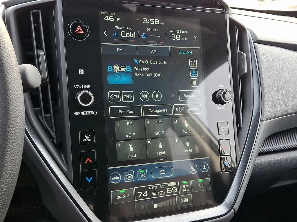 4-Wheel Disc Brakes, 6 Speakers, ABS brakes, Air Conditioning, Alloy wheels, AM/FM radio: SiriusXM with 360L, Anti-whiplash front head restraints, Auto High-beam Headlights, Automatic temperature control, Brake assist, Bumpers: body-color, Cloth Upholstery, Driver door bin, Driver vanity mirror, Dual front impact airbags, Dual front side impact airbags, Electronic Stability Control, Emergency communication system: MySubaru Companion (5-years free), Exterior Parking Camera Rear, Four wheel independent suspension, Front anti-roll bar, Front Bucket Seats, Front Center Armrest, Front dual zone A/C, Front fog lights, Front reading lights, Fully automatic headlights, Illuminated entry, Knee airbag, Low tire pressure warning, Occupant sensing airbag, Outside temperature display, Overhead airbag, Overhead console, Panic alarm, Passenger door bin, Passenger vanity mirror, Power door mirrors, Power steering, Power windows, Radio data system, Radio: Subaru 11.6" Multimedia Plus System, Rear anti-roll bar, Rear seat center armrest, Rear side impact airbag, Rear window defroster, Rear window wiper, Remote keyless entry, Security system, Speed control, Speed-sensing steering, Split folding rear seat, Spoiler, Steering wheel mounted audio controls, Tachometer, Telescoping steering wheel, Tilt steering wheel, Traction control, Trip computer, Turn signal indicator mirrors, Variably intermittent wipers, Wheels: 17" x 7.0" J Machine Finish Aluminum-Alloy.