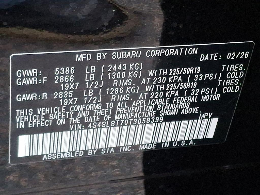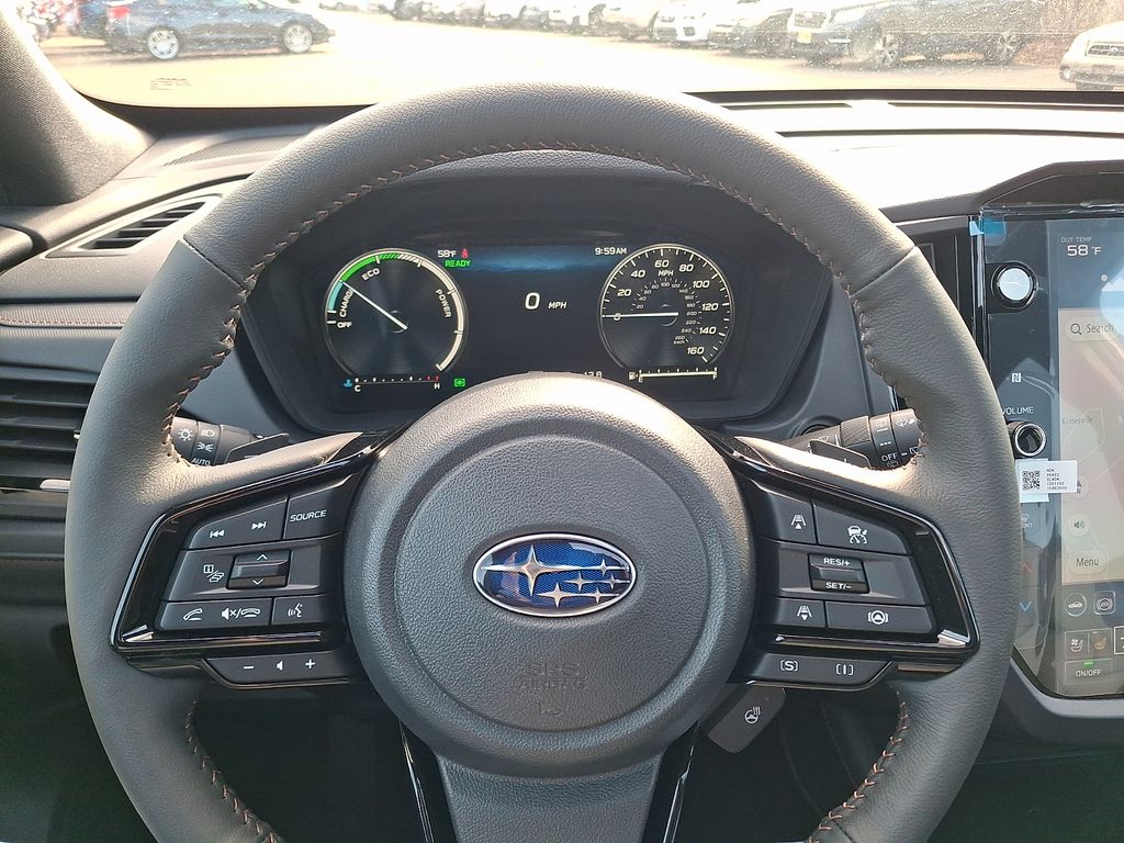 11 Speakers, 4-Wheel Disc Brakes, ABS brakes, Air Conditioning, All-Weather Floor Liners, Alloy wheels, AM/FM radio: SiriusXM with 360L, Anti-whiplash front head restraints, Auto High-beam Headlights, Auto-Dimming Exterior Mirror with Approach Light, Automatic temperature control, Brake assist, Bumpers: body-color, Cargo Net, Compass, Driver door bin, Driver vanity mirror, Dual front impact airbags, Dual front side impact airbags, Electronic Stability Control, Emergency communication system: MySubaru Companion (5-years free), Exterior Parking Camera Rear, Four wheel independent suspension, Front anti-roll bar, Front Bucket Seats, Front Center Armrest, Front dual zone A/C, Front fog lights, Front reading lights, Fully automatic headlights, harman/kardon® Speakers, Heated and Ventilated Front Bucket Seats, Heated door mirrors, Heated front seats, Heated rear seats, Heated steering wheel, HVAC memory, Illuminated entry, Knee airbag, LED Upgrade, Low tire pressure warning, Memory seat, Navigation System, Occupant sensing airbag, Outside temperature display, Overhead airbag, Overhead console, Panic alarm, Passenger door bin, Passenger vanity mirror, Perforated Leather-Trimmed Upholstery, Power door mirrors, Power driver seat, Power Liftgate, Power moonroof: Panoramic, Power passenger seat, Power steering, Power windows, Radio data system, Radio: Subaru 11.6" Multimedia Navigation System, Rear anti-roll bar, Rear Bumper Cover, Rear seat center armrest, Rear window defroster, Rear window wiper, Remote keyless entry, Security system, Speed control, Speed-sensing steering, Splash Guards, Split folding rear seat, Spoiler, Standard Model, Steering wheel mounted audio controls, Tachometer, Telescoping steering wheel, Tilt steering wheel, Touring Hybrid Package, Traction control, Trip computer, Turn signal indicator mirrors, Variably intermittent wipers, Ventilated front seats, Wheels: 19" x 7.5 J Dark Gray Aluminum-Alloy.