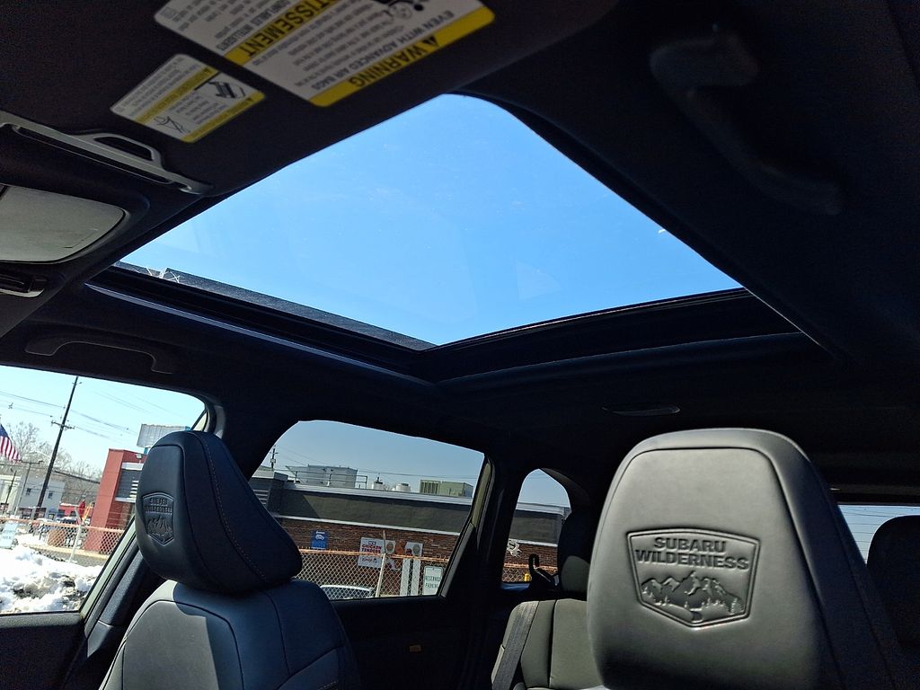 4-Wheel Disc Brakes, 6 Speakers, ABS brakes, Air Conditioning, Alloy wheels, AM/FM radio: SiriusXM with 360L, Anti-whiplash front head restraints, Auto High-beam Headlights, Automatic temperature control, Brake assist, Bumpers: body-color, Driver door bin, Driver vanity mirror, Dual front impact airbags, Dual front side impact airbags, Electronic Stability Control, Emergency communication system: MySubaru Companion (5-years free), Exterior Parking Camera Rear, Four wheel independent suspension, Front anti-roll bar, Front Bucket Seats, Front Center Armrest, Front dual zone A/C, Front fog lights, Front reading lights, Fully automatic headlights, Heated door mirrors, Heated Front Bucket Seats, Heated front seats, Illuminated entry, Knee airbag, Low tire pressure warning, Occupant sensing airbag, Outside temperature display, Overhead airbag, Overhead console, Panic alarm, Passenger door bin, Passenger vanity mirror, Power door mirrors, Power driver seat, Power moonroof: Panoramic, Power steering, Power windows, Radio data system, Radio: Subaru 11.6" Multimedia Plus System, Rain sensing wipers, Rear anti-roll bar, Rear seat center armrest, Rear window defroster, Rear window wiper, Remote keyless entry, Security system, Speed control, Speed-sensing steering, Split folding rear seat, Spoiler, Steering wheel mounted audio controls, Tachometer, Telescoping steering wheel, Textured StarTex Upholstery, Tilt steering wheel, Traction control, Trip computer, Turn signal indicator mirrors, Variably intermittent wipers, Wheels: 17" x 7.0 J Matte Black Finish Aluminum-Alloy.