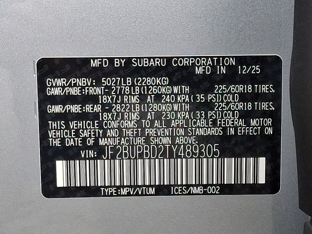 Android Auto, AWD, Blind Spot Warning / Alert, Bluetooth, Power Driver's Seat with Height Adjustable Lumbar, Rear Cross Traffic Warnings, Apple Car Play, Rear Back-up Camera, Black w/StarTex Upholstery, Navigation and Heated Steering Wheel and Moonroof, Partial Heated Steering Wheel, Power Moonroof, Radio: Subaru 12.1" Multimedia System with Navigation, Rain Sensor Windshield Wipers, Wireless Charger. 25/31 City/Highway MPG
