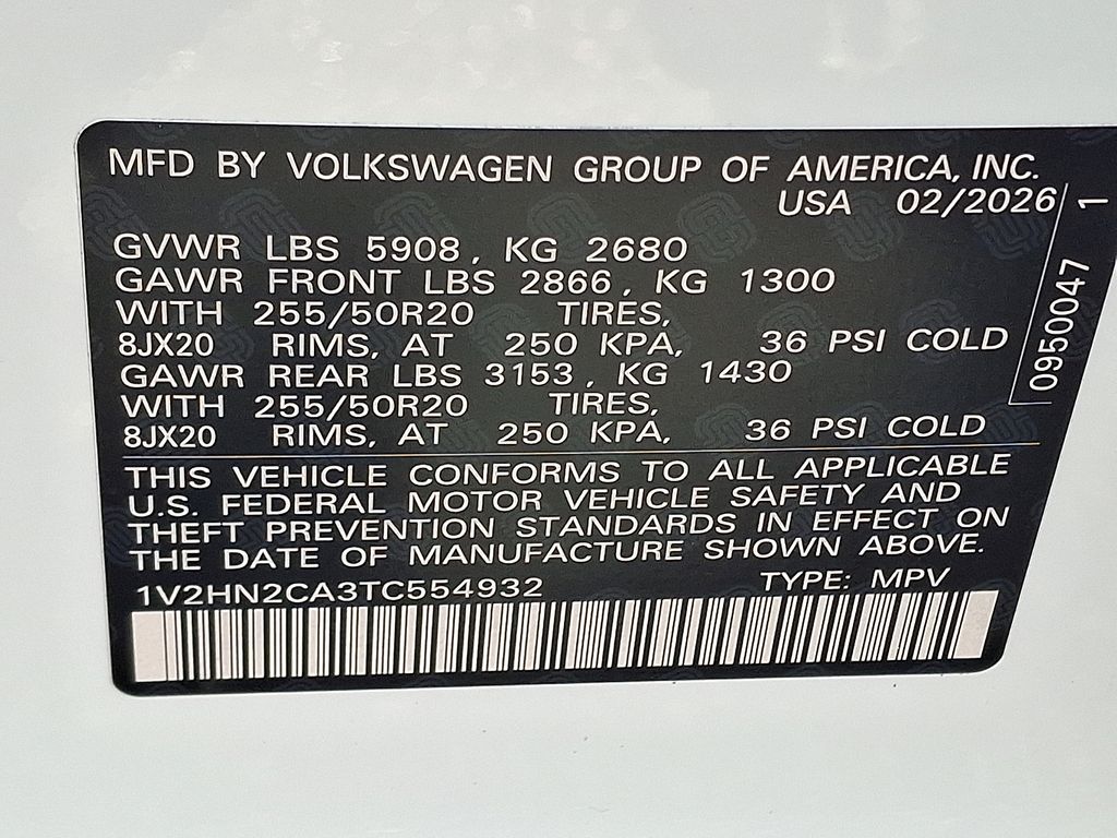 - Front tires: 255/50TR20.0