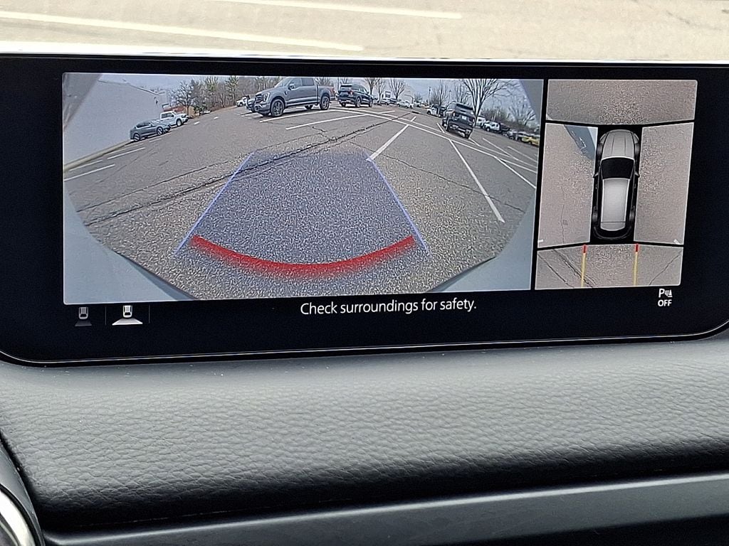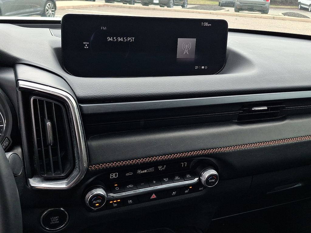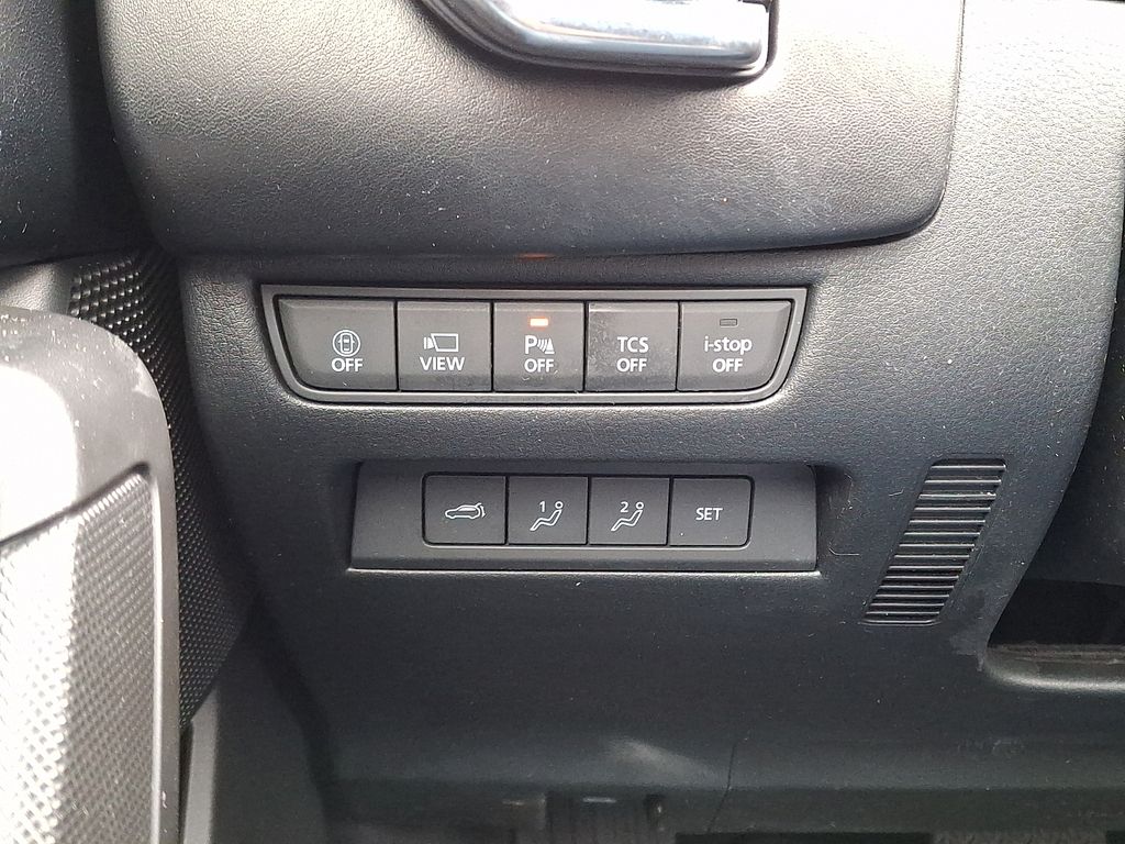 12 Speakers, 20" x 8J Aluminum Alloy Wheels, 3.841 Axle Ratio, 4-Wheel Disc Brakes, ABS brakes, Air Conditioning, Alloy wheels, AM/FM radio: SiriusXM, AppLink/Apple CarPlay and Android Auto, Auto High-beam Headlights, Auto-dimming door mirrors, Auto-dimming Rear-View mirror, Automatic temperature control, Brake assist, Bumpers: body-color, Cargo Blocks, Cargo Package, Compass, Delay-off headlights, Driver door bin, Driver vanity mirror, Dual front impact airbags, Dual front side impact airbags, Electronic Stability Control, Emergency communication system: MAZDA CONNECT, Front anti-roll bar, Front Bucket Seats, Front Center Armrest w/Storage, Front dual zone A/C, Front reading lights, Front wheel independent suspension, Fully automatic headlights, Garage door transmitter: HomeLink, Heads-Up Display, Heated & Ventilated Front Bucket Seats, Heated door mirrors, Heated front seats, Heated rear seats, Heated steering wheel, Illuminated entry, Knee airbag, Leather Seat Trim, Leather Shift Knob, Leather steering wheel, Low tire pressure warning, Memory seat, Navigation system: MAZDA CONNECT, Occupant sensing airbag, Outside temperature display, Overhead airbag, Overhead console, Panic alarm, Passenger door bin, Passenger vanity mirror, Power door mirrors, Power driver seat, Power Liftgate, Power moonroof, Power passenger seat, Power steering, Power windows, Radio data system, Radio: AM/FM/HD Audio System, Rain sensing wipers, Rear seat center armrest, Rear window defroster, Rear window wiper, Remote keyless entry, Speed control, Speed-sensing steering, Split folding rear seat, Spoiler, Steering wheel mounted audio controls, Tachometer, Telescoping steering wheel, Tilt steering wheel, Traction control, Trailer Hitch w/7-Pin Harness, Trip computer, Turn signal indicator mirrors, Variably intermittent wipers, Ventilated front seats, Wind Chill Pearl Paint Charge.